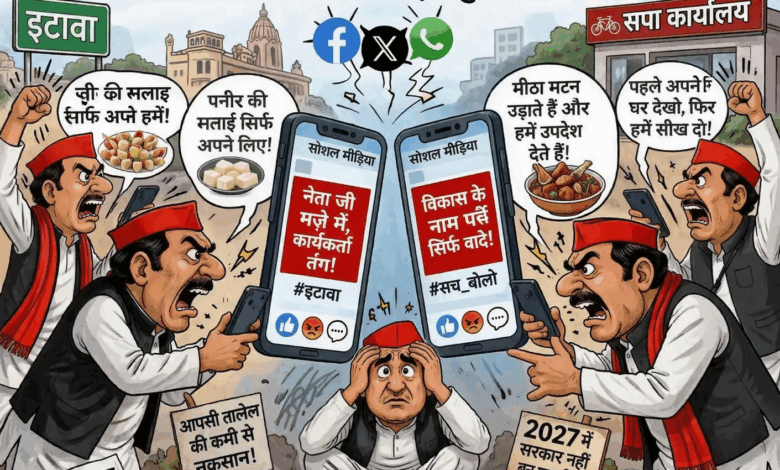इटावा में सपा कार्यकर्ताओं के बीच बढ़ी खींचतान, सोशल मीडिया पर छिड़ी जुबानी जंग