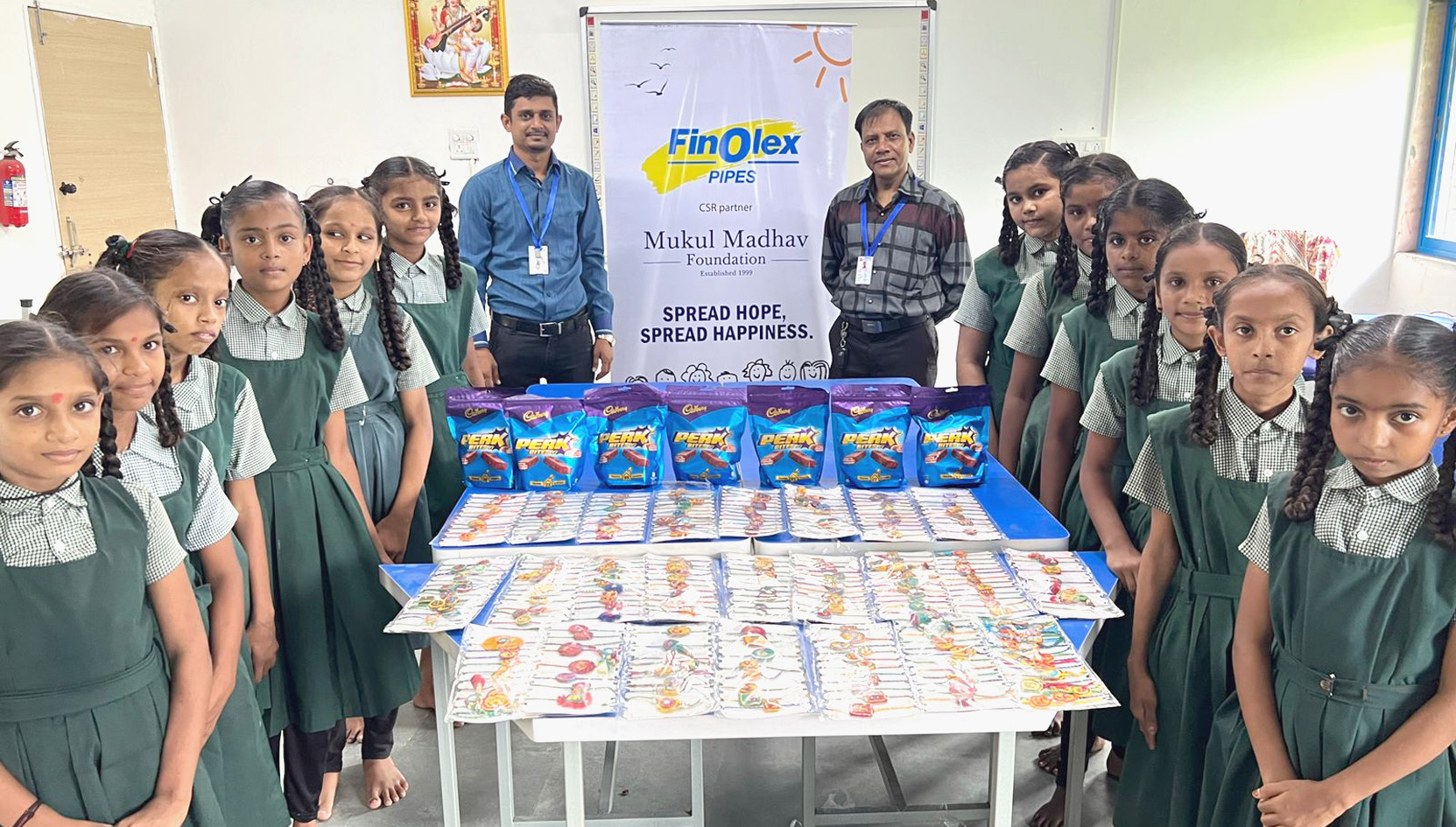 पुणे : भाई-बहन के रिश्ते को गहरा बनानेवाला रक्षाबंधन त्यौहार सामाजिक भावना से मुकुल माधव फाउंडेशन और फिनोलेक्स स्किलिंग सेंटर द्वारा मनाया गया. फाउंडेशन से जुड़े छात्र, मेंटली रिटायर्ड बच्चे और लोग, येरवडा के मेन्टल अस्पताल के पेशंट ने लगभग २७०० राखी का निर्माण किया. ये राखिया सीमा पे हमारा संरक्षण कर रहे सोल्जर्स, पुलिस कर्मचारी और स्पेशली एबल्ड बच्चो के लिए दी गई.