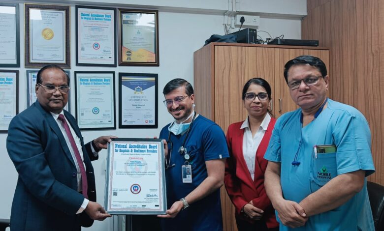 नोबल हॉस्पिटल ॲन्ड रिसर्च सेंटर के इमर्जन्सी विभाग को एनएबीएच प्रमाणपत्र