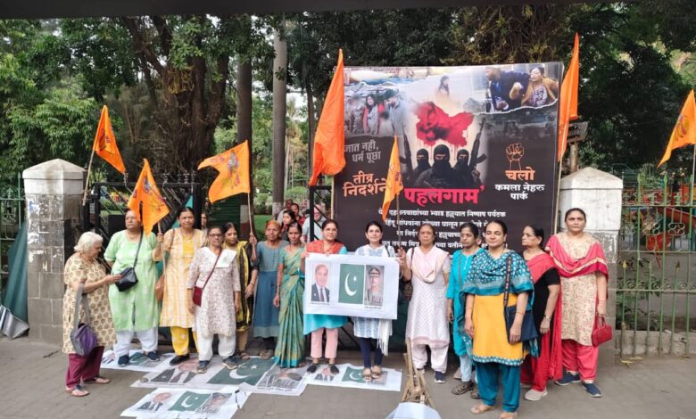 पुणे: पहलगाम में आतंकवादियों द्वारा किए गए कायराना हमले में निर्दोष हिंदू पर्यटकों की गोली मारकर हत्या कर दी गई। इस क्रूर कायरतापूर्ण हमले के विरोध में प्रभात तरूण मित्र मंडल और डेक्कन जिमखाना नागरिक मंच ने अपूर्व सोनटक्के, केतकी देशपांडे और बालासाहेब गिरम के नेतृत्व में प्रभात रोड स्थित कमला नेहरू पार्क में जोरदार विरोध प्रदर्शन किया।