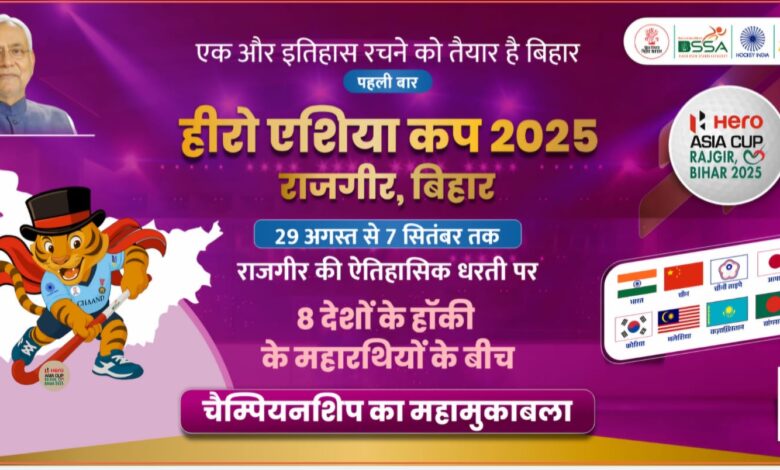 सीतामढ़ी/ बिहार: राजगीर में आगामी हीरो एशिया कप 2025 हॉकी चैंपियनशिप के संदर्भ में ट्रॉफी गौरव यात्रा का आयोजन 22 अगस्त 2025 को किया जाएगा। इस अवसर पर सुबह 11:00 बजे से डुमरा हवाई अड्डा मैदान में विशेष कार्यक्रम आयोजित होगा।