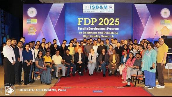 पुणे: इंटरनेशनल स्कूल ऑफ बिजनेस एंड मीडिया (ISB&M), पुणे ने अंतरराष्ट्रीय फैकल्टी डेवलपमेंट प्रोग्राम (FDP) 2025 का शुभारंभ किया। यह चार दिवसीय हाइब्रिड कार्यक्रम “डिज़ाइनिंग एंड पब्लिशिंग हाई-क्वालिटी रिसर्च” विषय पर आधारित था, जिसका आयोजन संस्थापक-अध्यक्ष डॉ. प्रमोद कुमार और डॉ. अरुण जोशी (चेयर, एग्जीक्यूटिव एजुकेशन) ने किया।