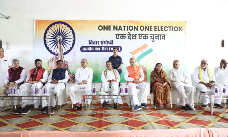 संगोष्ठी में सांसद श्री जनार्दन मिश्र ने कहा कि एक देश एक चुनाव बहुत आवश्यक है। दुनिया के कई देशों में तीन-चार तरह के चुनाव एक साथ होते हैं। बेल्जियम में मतदाता एक बार मतदान करके पाँच अलग-अलग तरह के जनप्रतिनिधि चुनता है जिनसे लोकसभा, विधानसभा और स्थानीय निकाय की सरकारों का गठन होता है। देश में भी प्रथम आम चुनाव से ही लोकसभा और विधानसभा के चुनाव एक साथ होते रहे हैं। भारत दुनिया का सबसे बड़ा लोकतंत्र है। यहाँ सर्वाधिक मतदाता हैं। यदि लोकसभा और विधानसभा के चुनाव एक साथ होने लगें तो करोड़ो मतदाता एक ही चुनाव में दो सरकारों के प्रतिनिधि चुन लेंगे। इससे परिश्रम, धन और समय तीनों की बचत होगी। प्रधानमंत्री श्री मोदी जी ने एक देश एक चुनाव का संकल्प लिया है। हम सब मिलकर इस संकल्प को पूरा करने में योगदान दें। संगोष्ठी में जिला पंचायत अध्यक्ष श्रीमती नीता कोल, पूर्व महापौर श्री वीरेन्द्र गुप्ता, समाजसेवी डॉ राजेन्द्र मिश्रा, श्री राम सिंह, श्री राजेश पाण्डेय, पूर्व विधायक श्री श्यामलाल द्विवेदी सहित बड़ी संख्या में स्थानीय जनप्रतिनिधि, कालेज के संचालक एसएन तिवारी, प्राध्यापकगण तथा विद्यार्थी उपस्थित रहे।