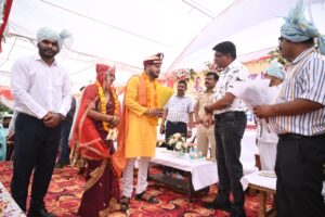 शहीद केदारनाथ महाविद्यालय प्रांगण मऊगंज में आयोजित जिला स्तरीय कार्यक्रम में जनप्रतिनिधियों सहित प्रशासनिक अधिकारियों ने नवदम्पत्तियों को शुभ आशीर्वाद दिया। उपस्थित जनों ने कहा कि गरीब लोगों के लिए यह योजना हितकारी है। अब बेटियों के विवाह की चिंता स्वयं सरकार करती है और जनप्रतिनिधियों सहित अधिकारी उपस्थित रह कर वर-वधू को आशीर्वाद देते हैं। आयोजन में सभी नवदंपत्तियों को शासन की ओर से निर्धारित सहायता राशि एवं उपहार सामग्री प्रदान की गई। इस अवसर पर कलेक्टर संजय कुमार जैन ने नवदम्पत्तियों को सुखमय जीवन की शुभकामना दी। कार्यक्रम में पुलिस अधीक्षक दिलीप सोनी, एसडीम मऊगंज एपी द्विवेदी,मऊगंज जनपद अध्यक्ष नीलम सिंह,सहित बड़ी संख्या में वर-वधू तथा उनके परिजन उपस्थित रहे।