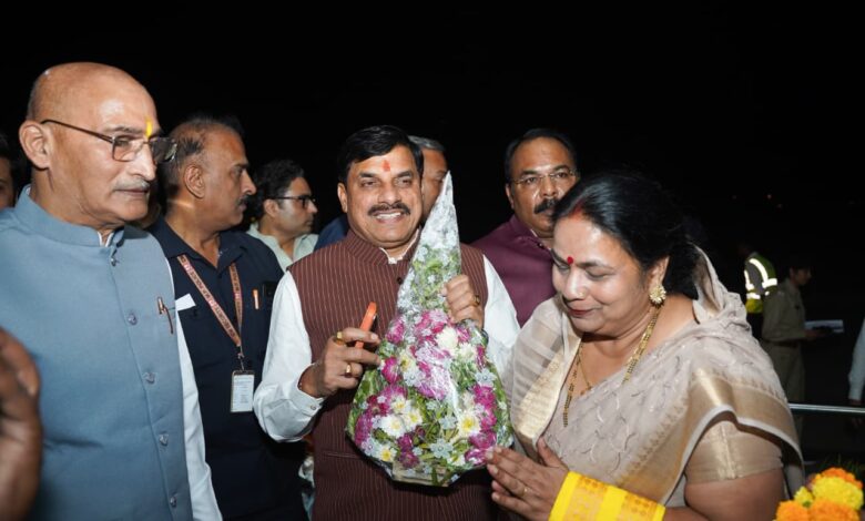 मुख्यमंत्री डॉ. यादव का रीवा एयरपोर्ट पहुंचने पर किया गया आत्मीय स्वागत