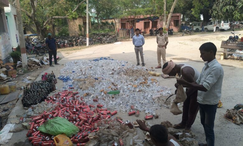 सोनबरसा थाना परिसर में 1,456.54 लीटर शराब नष्ट